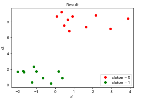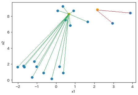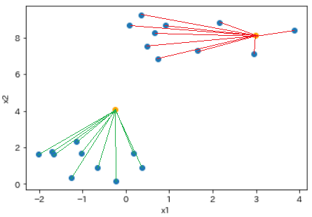 2.シード以外の点を、近い方のシードのクラスタとして分類する